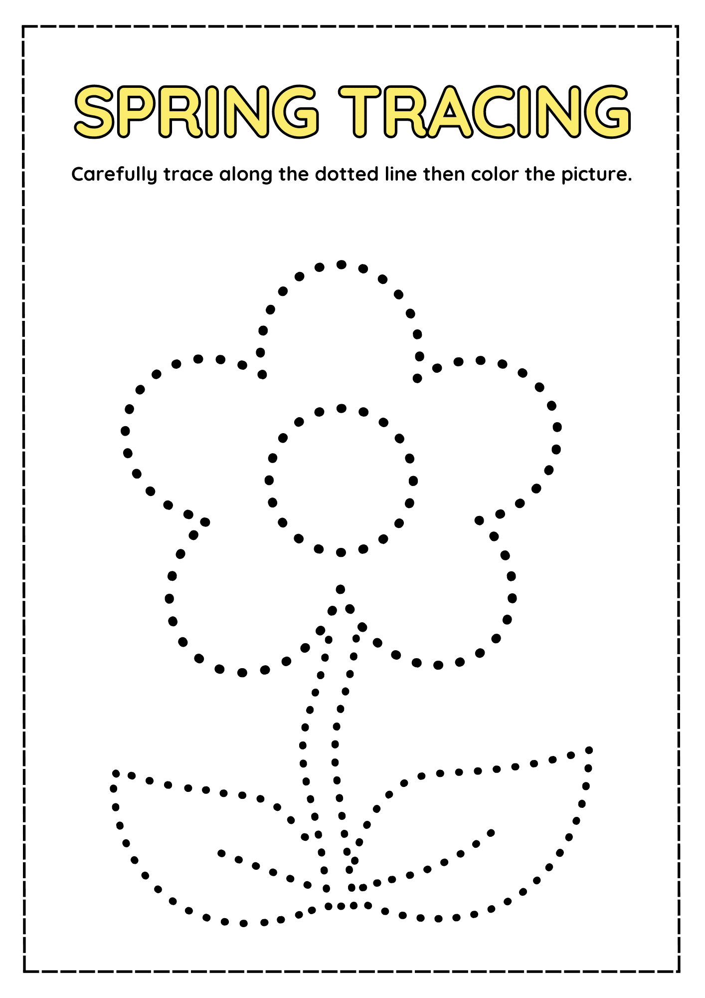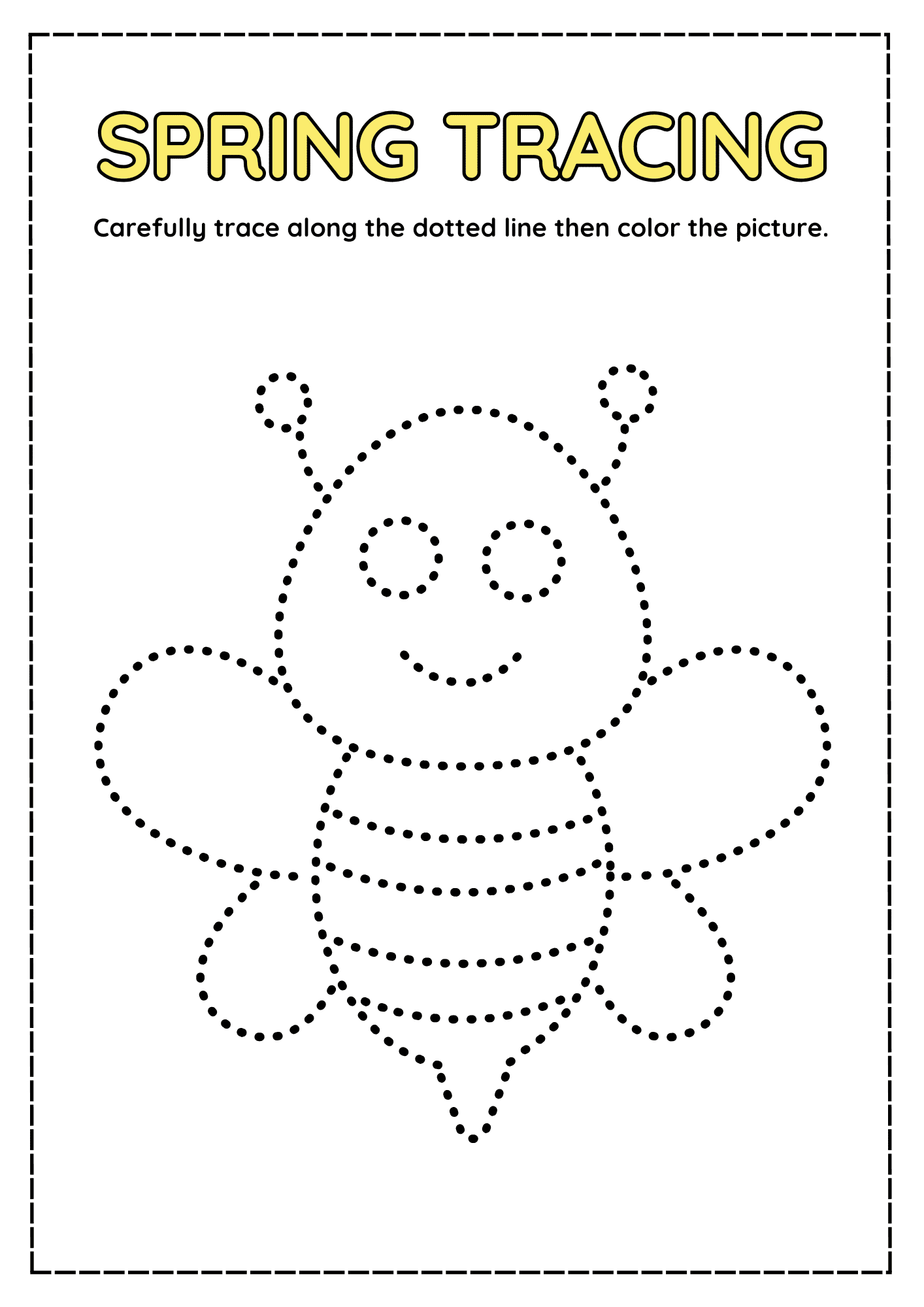 Celebrate the season of growth with these Spring Tracing Worksheets in Pink & Yellow Dotted Style (8.5 x 11 in). Each page features playful spring-themed illustrations with dotted lines for kids to trace and then color. These worksheets help children practice pre-writing skills, fine motor control, and hand-eye coordination while enjoying cheerful seasonal designs.