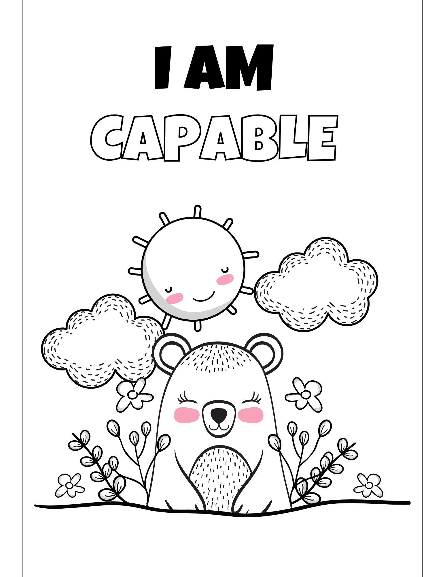 Wild Animals Positive Affirmations Coloring Book combines the joy of coloring with the power of positive thinking. Designed in a playful grayscale cartoon style, each page features a different wild animal alongside uplifting affirmations such as I Am Brave, I Am Loved, and I Am Confident.