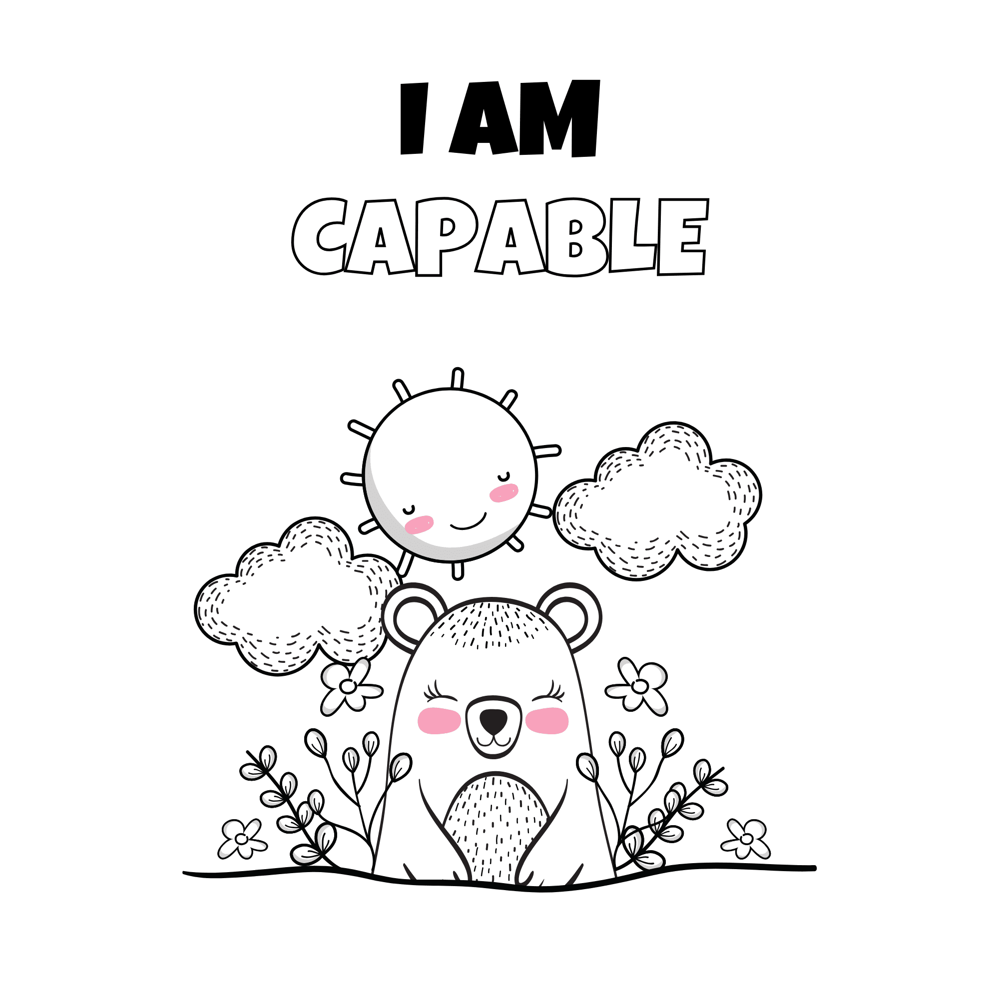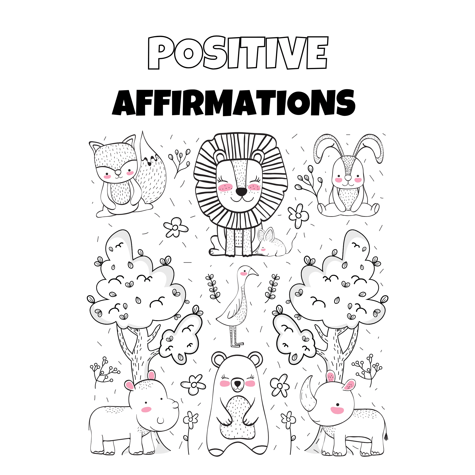 Empower creativity and self-belief with the Wild Animals Positive Affirmations Coloring Book in Grayscale Cartoon Illustrative Style. This unique coloring book combines the relaxing art of coloring with uplifting messages to inspire positivity and emotional well-being.